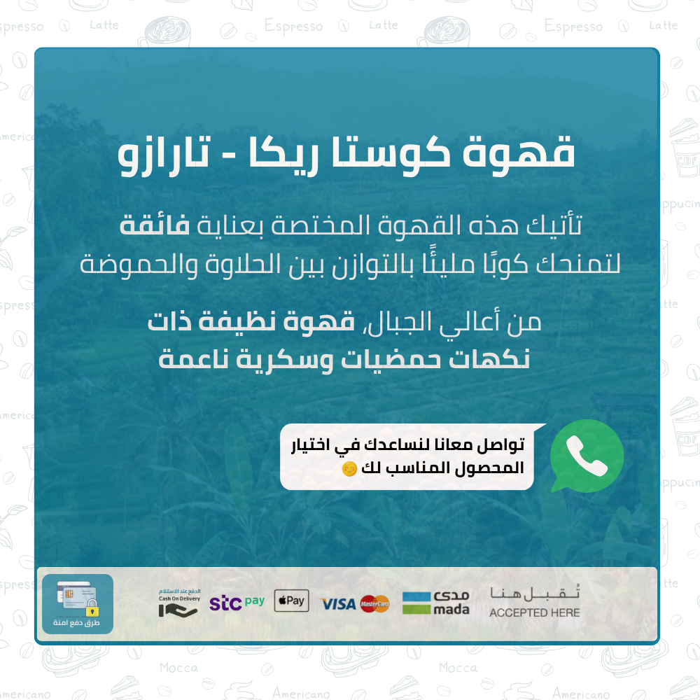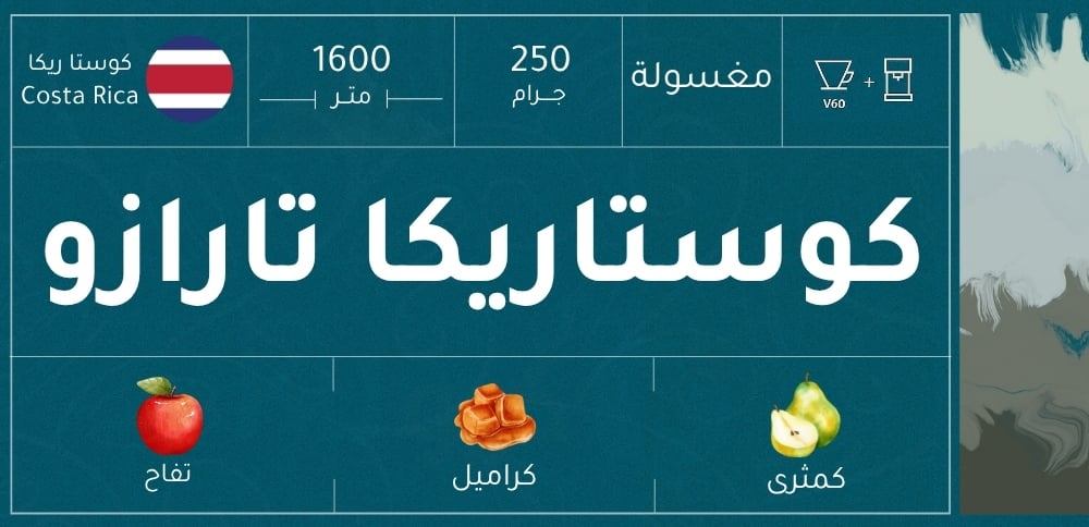 من مرتفعات منطقة تارازو الشهيرة في كوستا ريكا، تأتيك هذه القهوة المختصة بعناية فائقة، لتمنحك كوبًا مليئًا بالتوازن بين الحلاوة والحموضة.